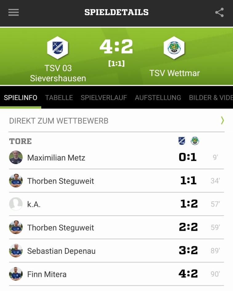 Der #Sievershausen kam besser in die Partie, doch Wettmar traf zuerst (9. Minute). Thorben Steguweit glich nach einer Ecke und Kopfballvorlage von Daoud Ido Kjalaf per Kopf zum 1:1 vor der Pause (34.).